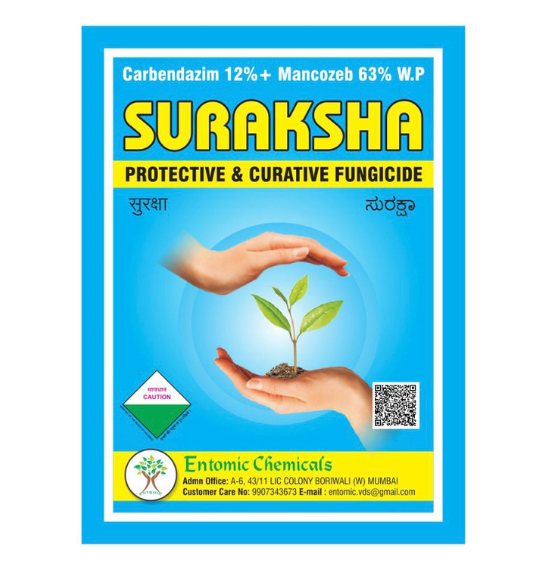 Suraksha is a powerful fungicide formulated with Carbendazim 12% + Mancozeb 63% that provides dual action against fungal diseases. It safeguards crops from a wide range of infections, improves plant immunity, and ensures higher yield quality with disease-free harvests. A trusted solution for protecting crops throughout their growth cycle.